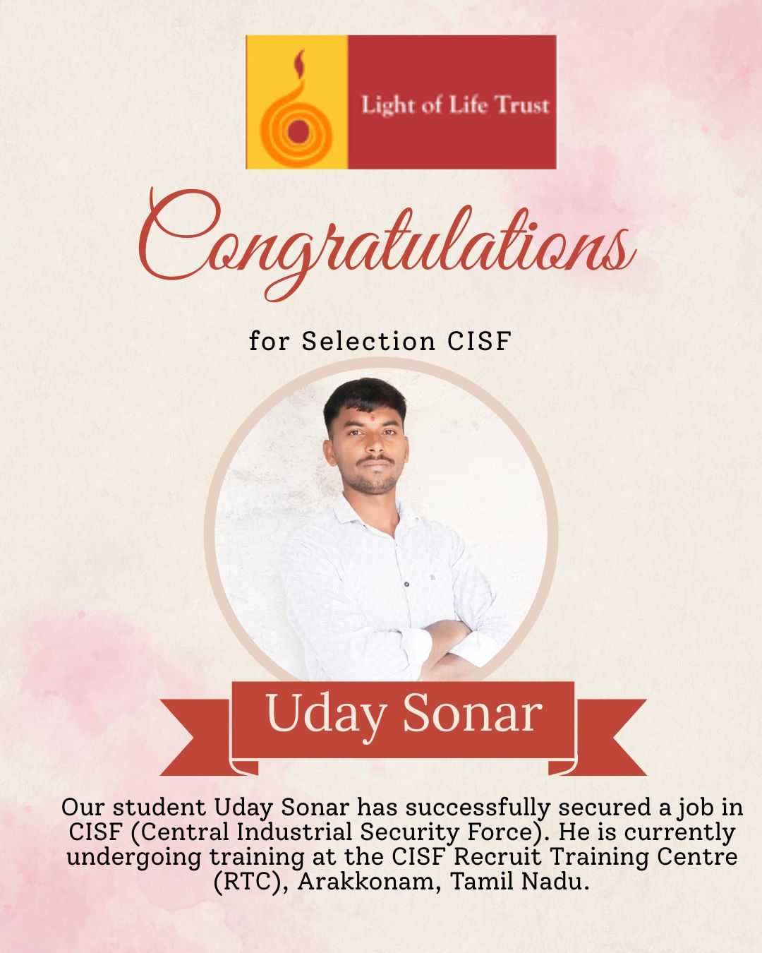“ Mr Viki Vidnesh Kavankar a single parent child from Borli Center, Murud Tehsil, Raigad District. Even after his father passed away, his mother remained a constant source of support. With the help of Light of Life Trust, he was able to pass his SSC, and he committed and meticulously prepared for the difficult task of joining the Indian Army.”