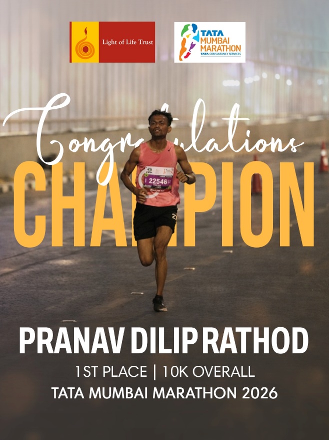 We are delighted to announce that our beneficiary runner from Yavatmal, Mr. Pranav Rathod, secured first place in the Overall 10K category at the Tata Mumbai Marathon 2026 with an impressive timing of 34 minutes 28 seconds, showcasing his dedication, discipline, perseverance, and inspiring journey.
